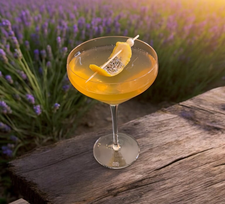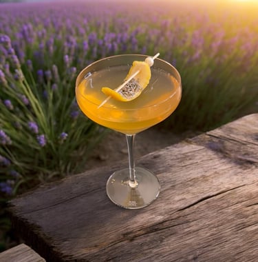 A vodka based sparkling prosecco cocktail featuring elderflower, honey and lavender with dry prosecco. Balancing bitterness and sweetness without the need for acid, this cocktail represents springtime in a town that borders between Italy and France.