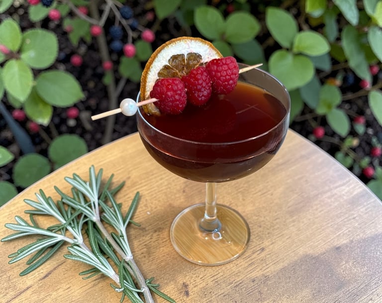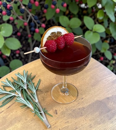 A rich, berry forward manhattan layering chambord and ruby port with rye whiskey, a dash of honey and orange bitters, creating the perfect wine lover’s whiskey cocktail.