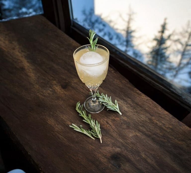 A signature riff on the classic French 75 blending Dry Gin with herbal liqueur, rosemary and Prosecco for a crisp, earthy and mildly sweet sparkling gin cocktail.